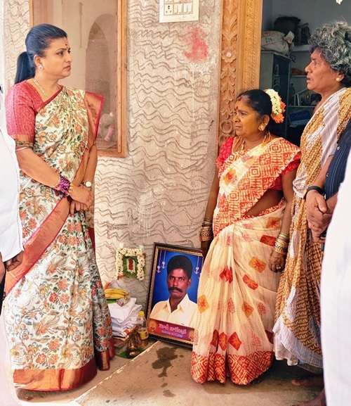 చిత్తూరు:  వైయ‌స్ఆర్‌సీపీ నాయ‌కుడు మోహన్ సోదరుడు నాగేంద్రన్ ఇటీవ‌ల మృతి చెంద‌డంతో ఆయ‌న కుటుంబ స‌భ్యుల‌ను మాజీ మంత్రి ఆర్.కె. రోజా పరామర్శించారు. మంగ‌ళ‌వారం ఆమె విజయపురం మండలం  జగన్నాధపురం గ్రామంలో ప‌ర్య‌టించారు.  నాగేంద్రన్ కుటుంబ సభ్యులతో మాట్లాడి వారికి దైర్యం చెప్పారు.  ఈ దుఃఖ సమయంలో పార్టీ తరఫున కుటుంబానికి అన్ని విధాలా అండగా ఉంటామని భరోసా ఇచ్చారు. నాగేంద్రన్  ఆత్మకు శాంతి చేకూరాలని కోరుతూ, కుటుంబ సభ్యులు ధైర్యంగా ఉండాలని ఆమె ప్రగాఢ సానుభూతిని వ్యక్తం చేశారు.