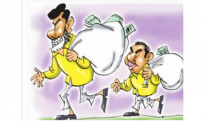 () చంద్రబాబు పరిపాలనకు రెండేళ్లు() పరవళ్లు తొక్కుతున్న అవినీతి() తండ్రీ కొడుకుల దోపిడీతో అల్లాడుతున్న ఆంధ్రప్రదేశ్() ప్రజల ద్రష్టిని మరల్చేందుకే మహా సంకల్పసభ అంటూ హడావుడిహైదరాబాద్) రెండు సంవత్సరాల చంద్రబాబు పరిపాలన ను గమనించినట్లయితే మూడు స్కాములు.. ఆరు మాఫియాలతో వర్థిల్లుతోంది. ఎలాగైనా సరే, డబ్బు సంపాదించాలన్న ఏకైక లక్ష్యంతో చంద్రబాబు అండ్ కో చెలరేగుతోంది. లక్షల కోట్ల రూపాయల ఆర్జనే లక్ష్యంగా అవినీతికి గేట్లు తెరిచారు. అవినీతిలో తన రికార్డులను తానే తిరగరాస్తున్నారు. ప్రజల మద్దతుతో గెలవడం కన్నా విచ్చలవిడిగా డబ్బు వెదజల్లి తిరిగి అధికారంలోకి రావాలనే కుతంత్రంతో పాలన సాగిస్తున్నారు. చంద్రబాబు ఈ రెండేళ్ల హయాంలో చేసిన అవినీతి ఆయన ముఖ్యమంత్రిగా ఉమ్మడి ఆంధ్రప్రదేశ్లో తొమ్మిదేళ్ల పాలనలో చేసిన అవినీతిని మించిపోయింది. ఇప్పటికే చంద్రబాబు చేసిన అవినీతిని లెక్కలు వేస్తే దాదాపు లక్షన్నర కోట్ల ను దాటుతోందంటే పరిస్థితిని అర్థం చేసుకోవచ్చు. ధన సంపాదన కోసం ఎంతకైనా తెగిస్తున్నారు. లంచాలు, ముడుపులు, వాటాలు, కమీషన్లు... ఇలా రకరకాల రూపాల్లో అన్నిచోట్లా బహిరంగంగానే అవినీతి చోటుచేసుకుంటోంది. భూములు, ప్రాజెక్టులు, గనులు, మద్యం, ఇసుక.. ఇలా దేన్నీ వదిలిపెట్టడం లేదు. ఆఖరికి రాజధాని నిర్మాణంలోనూ తమ స్వార్థ ప్రయోజనాలకే పెద్దపీట వేస్తున్నారు. ఇంత బరితెగించిన అవినీతి, అక్రమాలను గతంలో తామెప్పుడూ చూడలేదని ప్రభుత్వ సీనియర్ అధికారులే విస్తుపోతున్నారు. ఎల్లో మీడియాలో రాయడానికి వీలు లేకపోవటంతో అనేక మంది సీనియర్ జర్నలిస్టులు సైతం తమ సహచరులతో ఆవేదనను పంచుకొంటున్నారు. అవినీతిలో రాజధానిదే అగ్రస్థానం రాజధాని అమరావతి పేరుతో చంద్రబాబు చేస్తున్న భూ దందా ను అంతర్జాతీయ స్థాయి దందా గా అభివర్ణిస్తున్నారు. 29 గ్రామాల ప్రజల్ని రోడ్డు మీదకు నెట్టేసేందుకు కంకణం కట్టుకొన్న దారుణమైన స్కామ్ ఇది. రైతుల నుంచి 33వేల ఎకరాల భూముల్ని లాక్కొన్న చంద్రబాబు టీమ్, కేంద్ర ప్రభుత్వం కన్నుకప్పి 32వేల ఎకరాల అటవీ భూముల్ని నాశనం చేయాలని లక్ష్యంగా పెట్టుకొంది. దీంతో పాటు దేవాదాయ, వక్ఫ్, అసైన్డ్ బూముల్ని కలపుకొంటే దాదాపు లక్ష ఎకరాల భూముల్ని లాక్కొంటోంది. తక్కువలో తక్కువ చూసుకొన్న లక్ష కోట్ల రూపాయిల స్కామ్ అని పరిశీలకులు అంచనా వేస్తున్నారు. ఇంత పెద్ద మొత్తంలో భూముల్ని విదేశీ బినామీ సంస్థలకు అప్పగించటం రాజద్రోహంతో సమానమని అభిప్రాయ పడుతున్నారు. నీటిపారుదల ప్రాజెక్టుల్లో తిష్ట వేసిన అవినీతి గాలేరు–నగరి సుజల స్రవంతి, హంద్రీ–నీవా సుజల స్రవంతి, గోరకల్లు పనులను పాత కాంట్రాక్టర్ల నుంచి నిబంధనలకు విరుద్ధంగా తొలగించారు. ఆ పనుల అంచనా వ్యయాన్ని భారీగా పెంచేశా