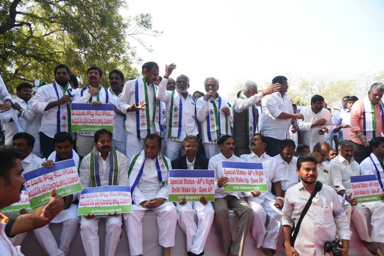 <br/><br/><br/>న్యూఢిల్లీ: ప్రత్యేక హోదా సాధన కోసం దేశ రాజధాని ఢిల్లీ వేదికగా వైయస్ఆర్ కాంగ్రెస్ పార్టీ చేపట్టిన మహాధర్నాకు పలువురు ఇతర పార్టీల నేతలు, ప్రజాసంఘాల కార్యకర్తలు సంఘీభావం తెలిపారు. సీపీఎం రాష్ట్ర కార్యదర్శి మధు, సీపీఐ ఏపీ కార్యదర్శి రామకృష్ణ, ముప్పాళ్ల నాగేశ్వరరావు, ఆప్ నేత రామారావు, ప్రత్యేక హోదా సాధన సమితి అధ్యక్షుడు సదాశివారెడ్డి, ఆంధ్ర మేధావుల సంఘం అధ్యక్షుడు చలసాని శ్రీనివాస్ తదితరులు సంసద్మార్గ్లో కొనసాగుతున్న మహాధర్నాలో పాల్గొని.. వైయస్ఆర్సీపీ పోరాటానికి అండగా నిలబడారు. ప్రత్యేక హోదా మన హక్కు అని, ప్రత్యేక హోదాను సాధించే పోరాటంలో అందరూ కలిసి రావాలని ఈ సందర్భంగా నేతలు సూచించారు. అందరూ కలిసి పోరాడితే.. రాష్ట్రానికి ప్రత్యేక హోదా తప్పకుండా వస్తుందని అన్నారు. ఏపీకి హోదా రాకపోవడానికి మొదట ద్రోహి కేంద్ర ప్రభుత్వం, రెండో ద్రోహి రాష్ట్ర ప్రభుత్వమని, ప్రత్యేక హోదా ఇవ్వకపోతే.. ఈ రెండు ప్రభుత్వాలకు గట్టి బుద్ధి చెప్పాలని మేధావుల సంఘం నేత చలసాని శ్రీనివాస్ ప్రజలకు సూచించారు.