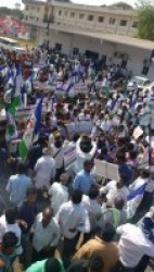 A large of number of the party leaders and supporters are staging protests at all the collectorate offices across the state.