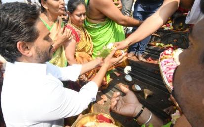 YS Jagan participates in idol consecration and Kumbhabhishekam at Sri Nandeeswara Temple