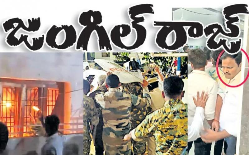 గుంటూరు: చంద్రబాబు రెడ్బుక్ రాజ్యాంగం రాష్ట్రంలో జంగిల్ రాజ్ సృష్టిస్తోంది. టీడీపీ గూండాలు బహిరంగంగా ఆయుధాలు చేతబట్టి వైఎస్సార్సీపీ నేత, కాపు నాయకుడు, మాజీ మంత్రి అంబటి రాంబాబుపై శనివారం హత్యాయత్నం చేయడం కలకలం రేపింది. కర్రలు, రాడ్లు, కోడిగుడ్లతో దాడి చేస్తూ అంబటి ఇంటి వద్ద టీడీపీ రౌడీలు రెచ్చిపోయారు. కార్యాలయంలోనూ విధ్వంసం సృష్టించారు. ఫర్నీచర్ ధ్వంసం చేశారు. తుదకు పెట్రోల్ పోసి నిప్పంటించారు. తిరుమల లడ్డూలో కల్తీ నెయ్యి కుట్ర బెడిసి కొట్టడంతో దాన్నుంచి ప్రజల దృష్టిని మళ్లించేందుకు ఏకంగా రాష్ట్రంలో శాంతిభద్రతల సమస్య సృష్టించేందుకు పాలకులు బరి తెగించారు. ఈ క్రమంలో వందలాది మంది పోలీసుల సమక్షంలోనే మాజీ మంత్రి ఇంటిపై దాడికి దిగినా వారు చోద్యం చూస్తూ మిన్నకుండి పోవడం విస్తుగొలుపుతోంది. వందల మంది రౌడీలు ఒకేసారి అంబటి రాంబాబు ఇంటిపైకి దాడి చేసి విధ్వంసం సృష్టించారు. ఆయనపైనా దాడి చేశారు. సాయంత్రం 5 గంటల నుంచి అర్ధరాత్రి దాటినా విధ్వంసం కొనసాగుతూనే ఉంది. ఒక పథకం ప్రకారం అంబటి రాంబాబును భౌతికంగా నిర్మూలించాలన్న తెలుగుదేశం పార్టీ కుట్రలో భాగంగా గూండాలను పంపించి ఆయనపై ఉదయం నుంచి దాడి చేయడానికి టీడీపీ ప్రయత్నాలు చేసింది. పక్కా స్కెచ్తో దాడులు శనివారం ఉదయం గుంటూరు రూరల్ మండలం గోరంట్లలోని శ్రీ వేంకటేశ్వర స్వామి దేవాలయంలో పూజలు చేసేందుకు బయలుదేరిన మాజీ మంత్రి అంబటి రాంబాబు నగరాల మీదుగా కారులో ప్రయాణిస్తుండగా ఒక్కసారిగా తెలుగుదేశం పార్టీ కార్యకర్తలు, మహిళా నాయకులు కారును అడ్డగించి దాడికి ప్రయత్నం చేశారు. దారి పొడవునా కర్రలు పట్టుకొని కేకలు వేస్తూ రెచ్చగొట్టారు. జిల్లా గ్రంథాలయ సంస్థ చైర్పర్సన్ వందన.. అంబటి రాంబాబును ఉద్దేశించి అసభ్య పదజాలంతో దూషించారు. ఈ సందర్భంగా అంబటి రాంబాబుకు, తెలుగుదేశం పార్టీ కార్యకర్తల మధ్య వాగ్వాదం జరిగింది. దీంతో అంబటి రాంబాబు అనుచిత వ్యాఖ్యలు చేశారంటూ తెలుగుదేశం పార్టీ నేతలు తప్పుడు ప్రచారం మొదలుపెట్టారు. పూజా కార్యక్రమం పూర్తి చేసుకుని తిరిగి సిద్ధార్థనగర్లోని తన కార్యాలయానికి అంబటి చేరుకున్నారు. అక్కడ మీడియాతో మాట్లాడారు. చంద్రబాబును ఉద్దేశించి తాను ఎటువంటి వ్యాఖ్యలు చేయలేదని స్పష్టం చేశారు. కల్తీ నెయ్యిపై గుంటూరు ఇన్నర్ రింగ్ రోడ్డులో టీడీపీ శ్రేణులు ఏర్పాటు చేసిన ఫ్లెక్సీని తొలగించాలని చెప్పినందుకే తనపై దాడికి తెగబడ్డారన్నారు. చంద్రబాబుకు దమ్ముంటే రావాలని అన్నానని, చంద్రబాబుని బూతులు తిట్టాలనే ఉద్దేశం లేనేలేదని స్పష్టం చేశారు. చంద్రబాబు, లోకేశ్, రెడ్ బుక్ రాజ్యాంగానికి భయపడే ప్రసక్తి లేదని, తన ఇంట్లోని కుక్కలు కూడా భయపడవని చెప్పారు. ఒకవేళ అరెస్ట్ చే