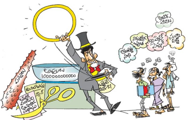 అమరావతి: రాష్ట్రంలో 1.80 లక్షల మంది మహిళలకు చంద్రబాబు ‘ఆడబిడ్డ నిధి’ ఇస్తామని హామీ ఇచ్చారు. ఒక్కొక్కరికీ ఏటా రూ.18 వేలు చొప్పున మూడేళ్లలో దాదాపు రూ.లక్ష కోట్లు ఇవ్వాలి. కానీ.. మూడు బడ్జెట్లు ప్రవేశపెట్టినా ఇచ్చింది మాత్రం సున్నా. 20 లక్షల మంది నిరుద్యోగులకు భృతి ఇస్తామన్నారు. నెలకు రూ.3 వేలు చొప్పున మూడేళ్లలో నిరుద్యోగ యువతకు రూ.21,600 కోట్లు ఇవ్వాలి. కానీ.. ఇచ్చింది గుండు సున్నా. 50 ఏళ్లు నిండిన ఎస్సీ, ఎస్టీ, బీసీ, మైనార్టీలు 20 లక్షల మందికి పెన్షన్ హామీని నెరవేర్చకుండా మూడేళ్లలో రూ.28,800 కోట్లు ఎగనామం పెట్టారు. సున్నా వడ్డీ పథకానికి తూట్లు పొడిచి దాదాపు కోటి మంది పొదుపు మహిళలతోపాటు రైతులనూ దగా చేశారు. సూపర్ సిక్స్, ఎన్నికల హామీలను నెరవేర్చకుండా మూడు కోట్ల మందికిపైగా మహిళలు, రైతులు, యువతకు చంద్రబాబు వెన్నుపోటు పొడిచారు. మూడో బడ్జెట్లోనూ వాటి ప్రస్తావనే లేకుండా చేసి ఇక ఆ పథకాలను అమలు చేయబోమని విస్పష్టంగా అసెంబ్లీ సాక్షిగా ప్రకటించినట్లైంది. తల్లికి వందనం పథకానికి రూ.13,112 కోట్లు కావాల్సి ఉంటే ఈ బడ్జెట్లో ఇచ్చింది రూ.8,457 కోట్లే! మొదటి ఏడాది పూర్తిగా ఎగ్గొట్టి రెండో ఏడాది కోతలతో సరిపుచ్చారు. అన్నదాతా సుఖీభవ కింద పాత బకాయిలతో కలిపి రూ.27,455 కోట్లు ఇవ్వాల్సి ఉంటే బడ్జెట్లో చేసిన కేటాయింపులు రూ.6,600 కోట్లు మాత్రమే. దీపం పథకం అమలుకు ఏటా రూ.4,200 కోట్లు అవసరం కాగా బడ్జెట్లో ప్రతిపాదించింది కేవలం రూ.2,601 కోట్లే! ‘దీపం’ పథకం కింద బకాయిలతో కలిపి రూ.6,183 కోట్లు ఎగనామం పెట్టారు. మహిళలకు ఉచిత బస్సు హామీని తొలి ఏడాది నెరవేర్చకుండా రూ.3,200 కోట్లు ఎగ్గొట్టారు. రెండో ఏడాది నుంచి అనేక ఆంక్షలతో అరకొరగా అమలు చేస్తున్నారు. ఇక ఉద్యోగుల బకాయిలు దాదాపు రూ.40 వేల కోట్లు ఉండగా పెండింగ్లో ఉన్న 4 డీఏలు ఎప్పుడు అందుతాయో తెలియని దుస్థితి నెలకొంది. ఇలా అన్ని వర్గాలను మోసం చేస్తూ రూ.3.32 లక్షల కోట్లతో 2026–27 వార్షిక బడ్జెట్ను టీడీపీ కూటమి సర్కారు బడ్జెట్ను శనివారం అసెంబ్లీకి సమర్పించింది. సంక్షేమం, అభివృద్ధి, సంపద సృష్టి అనేది బడ్జెట్లో ఎక్కడా లేకపోగా ప్రభుత్వ గ్యారెంటీ రుణాలను దాచి పెట్టింది. భారీ అప్పులు, పన్నులు, పన్నేతర వాతలు మాత్రం బడ్జెట్లో ప్రస్ఫుటంగా కనిపించాయి. పది సూత్రాల సూక్తులు మినహా కార్యాచరణ బడ్జెట్లో కానరాలేదు. పేదల ఇళ్లపై కక్ష.. పేదల ఇళ్ల నిర్మాణంపై చంద్రబాబు సర్కారు కక్షగట్టినట్లు వ్యవహరిస్తోంది. కాగితాలపై కేటాయింపులు మినహా ఖర్చు చేయడం లేదు. గత రెండు బడ్జెట్లలో కేటాయింపులు, వాస్తవ వ్యయం తీరే దీనికి నిదర్శనం. 2024–25లో పేదల ఇళ్ల నిర్మాణాలకు రూ.4,012 కోట్లు కేటాయించగా రూ.1,611 కోట్లు మాత్రమే వెచ్చించారు. 2025–26లో రూ.6,317 కోట్లను కేటాయించగా సవరించిన అంచనాల్లో వ్యయం కేవలం ర