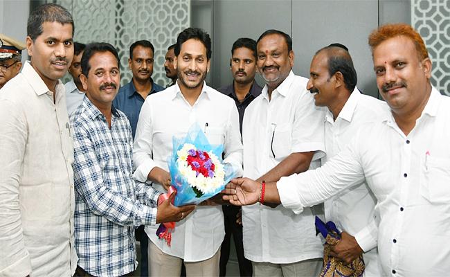 తాడేపల్లి: ముఖ్యమంత్రి వైయస్ జగన్మోహన్రెడ్డిని పలు ఉద్యోగ సంఘాల నేతలు గురువారం కలిశారు. టీడీపీ హయాంలో తొలగించిన 500 మంది మండల సమన్వయకర్తలకు స్వచ్చాంధ్ర కార్పొరేషన్లో అవకాశం కల్పించటంపై హర్షం వ్యక్తం చేశారు. ఈ సందర్భంగా సీఎం వైయస్ జగన్ను కలిసి కృతజ్ఞతలు తెలిపారు. సర్వే డిపార్ట్మెంట్లో పనిచేస్తున సుమారు 11 వేల మంది గ్రేడ్-3 సర్వేయర్లను గ్రేడ్-2 సర్వేయర్లుగా అప్గ్రేడ్ చేస్తూ ఉత్తర్వులు జారీ చేసినందుకు సీఎం క్యాంప్ కార్యాలయంలో సీఎం వైయస్ జగన్ను కలిసిన ఏపీ సర్వే ఎంప్లాయిస్ అసోసియేషన్.. కృతజ్ఞతలు తెలిపింది. ఏపీ గవర్నమెంట్ ఎంప్లాయిస్ ఫెడరేషన్ ఛైర్మన్ కాకర్ల వెంకట్రామిరెడ్డి, రెవెన్యూ జేఏసీ చైర్మన్ విఎస్ దివాకర్, సర్వే ఎంప్లాయిస్ అసోసియేషన్ అధ్యక్షుడు ఆర్. చిరంజీవిరావు వారి వెంట ఉన్నారు.