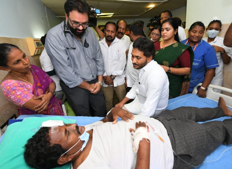 అనకాపల్లి: చ్యుతాపురం ఘటనలో బాధిత కుటుంబాలకు పరిహారం చెల్లింపులో ఆలస్యం జరిగితే బాధితుల పక్షాన వైయస్ఆర్సీపీ పోరాడుతుందని, స్వయంగా నేనే ధర్నాకు వస్తానని వైయస్ జగన్ మోహన్ రెడ్డి హెచ్చరించారు. అచ్యుతాపురం ఘటనలో చంద్రబాబు ప్రభుత్వం వ్యవహరించిన తీరు బాధాకరమని వైయస్ జగన్మోహన్రెడ్డి అన్నారు. శుక్రవారం ఉదయం అనకాపల్లిలోని ఓ ప్రైవేట్ ఆస్పత్రిలో చికిత్స పొందుతున్న బాధితుల్ని పరామర్శించారు. అనంతరం ఆయన మీడియాతో మాట్లాడారు. వైయస్ జగన్ ఏమన్నారంటే.. ప్రభుత్వ స్పందన లేదు: అచ్యుతాపురం సెజ్లో ఫార్మా కంపెనీలో బ్లాస్ట్ తర్వాత ప్రభుత్వ స్పందన ఏ మాత్రం సక్రమంగా లేదు. ఘటనపై స్పందించకూడదు అన్న తాపత్రయం ప్రభుత్వంలో కనిపించింది. 17 మంది చనిపోయిన దుర్ఘటనపై ఆరోజు సా.4 గం.కు మీడియాతో మాట్లాడిన హోం మంత్రి సహాయక చర్యల పర్యవేక్షణకు తాను ఘటనా స్థలానికి వెళ్తున్నట్లు చెప్పలేదు. మరో గంటకు మీడియాతో మాట్లాడిన కార్మిక శాఖ మంత్రికి కనీస సమాచారం లేదు. ప్రమాదం జరిగిన తర్వాత ఘటనా స్ధలానికి కలెక్టర్ ఎప్పుడు వెళ్లారు? అధికారులు ఎప్పుడు వెళ్లారు? కమిషనర్ ఎప్పుడు వెళ్లారన్నది గమనిస్తే చాలా బాధ కలిగిస్తుంది. అంత తీవ్రస్థాయిలో ప్రమాదం జరిగినా తగిన సంఖ్యలో అంబులెన్సులు మొబిలైజ్ చేయకపోవడంతో కంపెనీ బస్సుల్లోనే బాధితులను ఆస్పత్రులకు తరలించారు. అదే ఆనాడు చూస్తే..: తమ ప్రభుత్వ హయాంలో, కోవిడ్ సంక్షోభ సమయంలో, 2020 మే నెలలో విశాఖలో ఎల్జీ పాలిమర్స్ దుర్ఘటన జరిగినప్పుడు ఎలా స్పందించామో.. తేడా మీరే చూడండి. ఆ ఘటన తెల్లవారు జామున 3.40 గం.కు జరిగితే ఉ.5 గం.కల్లా కలెక్టర్, కమిషనర్ సంఘటనా స్ధలానికి వెళ్లారు. అప్పటికే పెద్దసంఖ్యలో అంబులెన్సులు మొహరించి, ప్రతి బాధితుడికి తోడుగా నిల్చాం. ఉ.6 గం.కల్లా సీనియర్ నాయకులంతా ఘటనా స్ధలానికి వెళ్లి, సహాయ కార్యక్రమాలు పర్యవేక్షించారు. అదే రోజు ఉ.11 గం.కల్లా నేను స్వయంగా అక్కడికి చేరుకుని బాధితులను పరామర్శించాను. గతంలో ఎప్పుడూ లేని విధంగా ఘటన తర్వాత కేవలం 24 గంటల్లోనే ఏకంగా కోటి రూపాయల పరిహారం అందించాం. అలా రూ.30 కోట్లు అందించి బాధితులకు తోడుగా నిలబడ్డాం. మరోవైపు అస్వస్థతకు గురైన వారందరినీ తక్షణమే ఆస్పత్రిలో చేర్చాం. మూడు రోజులు ఆస్పత్రిలో ఉన్న వారికి రూ.10 లక్షలు, ఆస్పత్రుల్లో చేరిన వారికి రూ.3 లక్షల పరిహారం అందించడంతో పాటు, స్వల్ప చికిత్స కోసం ఆసుపత్రికి వచ్చిన వారందరికీ రూ.25 వేలు ఇచ్చాం. ప్రమాదం జరిగిన కంపెనీ చుట్టూ ఉన్న 5 గ్రామాల్లో 15 వేల మందికి రూ.10 వేల చొప్పున ఆర్థిక సాయం చేసి, వారికి తోడుగా నిలబడ్డాం. బాధితులు కష్టాల్లో ఉన్నప్పుడు ప్రభుత్వం ఎలా స్పందించాలన్న దానికి ఇవన్నీ ఉదాహరణలు. తేడా గమనించమని కోరుతున్నాను. చంద్రబాబు. ప