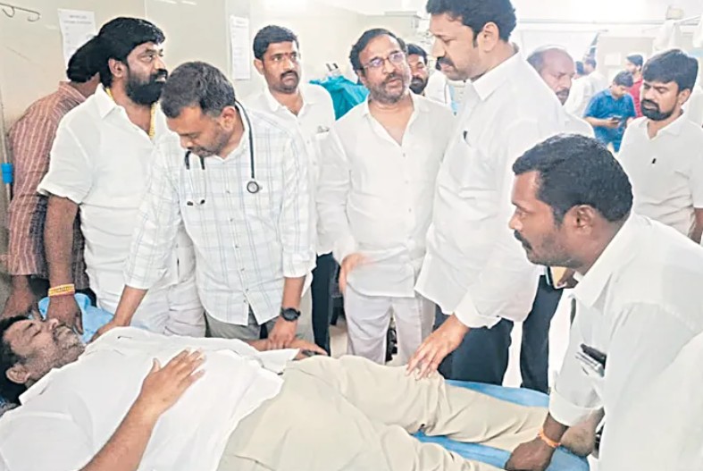 పులివెందుల: ఏదైనా ఎన్నిక వస్తే ప్రజలకు తాము చేసిన మంచిని చెప్పుకొని ఓట్లు అడగడం రాజకీయ పార్టీలు పాటించే పద్ధతి. అనుకోని పరిస్థితుల్లో పదవిలో ఉన్న నాయకుడు చనిపోతే ఉప ఎన్నిక లేకుండా వారి కుటుంబానికి చెందిన వ్యక్తి ఏకగ్రీవంగా ఎన్నికయ్యేలా చేయడం గౌరవ సంప్రదాయం...! అయితే, తాము చేసింది ఏమీ లేక, రాజకీయాల్లో హుందాతనమూ మరిచిన టీడీపీ నేతలు వైఎస్సార్ కడప జిల్లా పులివెందులలో బరితెగించారు. ఈ నెల 12న జరగనున్న జెడ్పీటీసీ ఉప ఎన్నిక ముంగిట పచ్చ పార్టీ మూకలు చెలరేగాయి. పులివెందుల జెడ్పీటీసీ సభ్యుడు మహేశ్వరరెడ్డి అకాల మరణంతో ఉప ఎన్నిక నిర్వహిస్తుండగా టీడీపీ తమ అభ్యర్థిని నిలిపింది. తీవ్ర అనైతిక కార్యకలాపాలకు తెరలేపింది. చివరకు వైయస్ఆర్సీపీ నాయకులపై దాడులకు కూడా తెగిస్తోంది. ఇదంతా పోలీసుల అండతోనే జరుగుతోందని స్పష్టంగా తెలుస్తోంది. జైడ్పీటీసీ ఉప ఎన్నికల్లో వైయస్ఆర్సీపీ నాయకుడు సైదాపురం సురేష్రెడ్డి స్వతంత్ర అభ్యర్థిగా పోటీ చేస్తున్నారు. దీంతో సురేష్రెడ్డిపై టీడీపీ నాయకులు తీవ్ర ఆగ్రహంతో ఉన్నారు. సురేష్రెడ్డి మంగళవారం ∙బంధువు అమరేశ్వరరెడ్డితో కలిసి పులివెందులలో టీడీపీ కార్యాలయ సమీపంలో ఉన్న ఓ ఫంక్షన్ హాల్లో వివాహ వేడుకకు హాజరయ్యారు. వారు కురీ్చల్లో కూర్చుని ఉండగా టీడీపీ కార్యాలయం నుంచి 30 మందిపైగా ఆ పార్టీ నాయకులు, కార్యకర్తలు కర్రలు, రాళ్లతో వచ్చి హత్యాయత్నానికి పాల్పడ్డారు. సురేష్కు సంబంధించిన వాహనాన్ని ధ్వంసం చేశారు. దాడిలో అమరేశ్వరరెడ్డి తలకు బలమైన గాయమైంది. సురేష్ రెడ్డికి కమిలిన గాయాలయ్యాయి. చేయి విరిగింది. వీరిని పులివెందులలోని ప్రైవేట్ ఆసుపత్రికి తరలించారు. ఈ విషయం తెలిసి కడప ఎంపీ వైఎస్ అవినాష్ రెడ్డి వెంటనే ఆస్పత్రికి చేరుకుని బాధితులను పరామర్శించి అండగా ఉంటామని భరోసా ఇచ్చారు. ఓటమి ఖాయమై అసహనంతోనే దాడులు: ఎంపీ వైఎస్ అవినాష్ రెడ్డి బాధితులను పరామర్శించిన అనంతరం ఎంపీ వైఎస్ అవినాష్ రెడ్డి మీడియాతో మాట్లాడారు. టీడీపీ వారికి ఎక్కడా గెలుపు ఆశ కనిపించలేదని దీంతో వైయస్ఆర్సీపీ నాయకులు, కార్యకర్తలపై దాడి చేసి ఉప ఎన్నికను కంట్రోల్లోకి తెచ్చుకోవాలని కుటిల పన్నాగం పన్నారని పేర్కొన్నారు. అమరే‹Ù, జెడ్పీటీసీ ఉప ఎన్నికలో ఇండిపెండెంట్గా పోటీ చేస్తున్న సురేష్ రెడ్డి ఓ పెళ్లికి వెళ్లగా ఐదు వాహనాల్లో అక్కెళ్ల విజయ్కుమార్రెడ్డి, కిరికిరి బాషా, 30 మందిపైగా టీడీపీ కార్యకర్తలు కర్రలతో, రాడ్లతో దాడి చేశారని తెలిపారు. కేవలం ఈ ఎన్నిక కోసం భయభ్రాంతులకు గురిచేయడానికి, హత్యలకు సైతం వెనుకాడడం లేదని మండిపడ్డారు. స్థానిక టీడీపీ నాయకులు, కార్యకర్తలు, ఇన్చార్జి, చంద్రబాబుకు నిజంగా వారి పాలనపై నమ్మకం ఉంటే, సూపర్ సిక్స్ అ