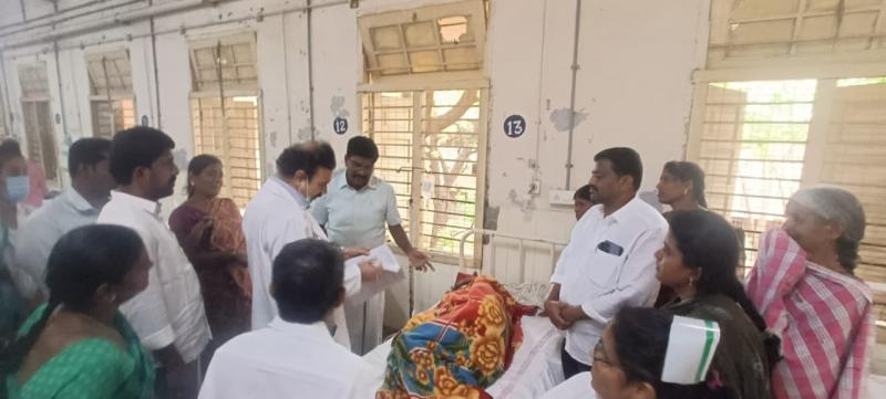 అనంతపురం: కళ్యాణదుర్గం నియోజకవర్గంలో టీడీపీ గూండాలు రెచ్చిపోయారు. అధికార మదంతో కొత్తూరు గ్రామంలో వైయస్ఆర్సీ కార్యకర్తలపై దాడికి పచ్చమూకలు తెగబడ్డాయి. ఈ దాడిలో ఆరుగురు వైయస్ఆర్సీ కార్యకర్తలకు తీవ్ర గాయాలు కాగా, క్షతగాత్రులను ఆసుపత్రి కి తరలించి చికిత్స అందిస్తున్నారు. కొత్తూరు గ్రామంలో మూడు ఎకరాల ప్రభుత్వ భూమిని ఆక్రమించేందుకు టీడీపీ నేతల యత్నించారు. ఈ విషయంపై వైయస్ఆర్సీ నేతలు రెవెన్యూ, పోలీసు అధికారుల కు ఫిర్యాదు చేశారు. దీంతో జీర్ణించుకోలేని టీడీపీ నేతలు తమ పైనే ఫిర్యాదు చేస్తారా అంటూ విచక్షణారహితంగా దాడులకు పాల్పడ్డారు. పరామర్శ టీడీపీ గుండాల దాడిలో గాయపడిన క్షతగాత్రులను వైయస్ఆర్సీపీ నియోజకవర్గ సమన్వయకర్త, మాజీ ఎంపీ తలారి రంగయ్య పరామర్శించారు. కొత్తూరు గ్రామానికి చెందిన అక్కమ్మ ఆరోగ్య పరిస్థితిని డాక్టర్లను అడిగి వివరాలు తెలుసుకున్నారు. అక్కమ్మకు మెరుగైన చికిత్స అందించాలని వైద్యులకు సూచించారు. అక్కమ్మ కుటుంబ సభ్యులకు ధైర్యంగా ఉండాలని, అండగా ఉంటానని తలారి రంగయ్య భరోసా ఇచ్చారు. పరామర్శించిన వారిలో కళ్యాణదుర్గం రూరల్ కన్వీనర్ గోళ్ళ సూరి, కొత్తూరు సర్పంచ్ బాబు ఉన్నారు.