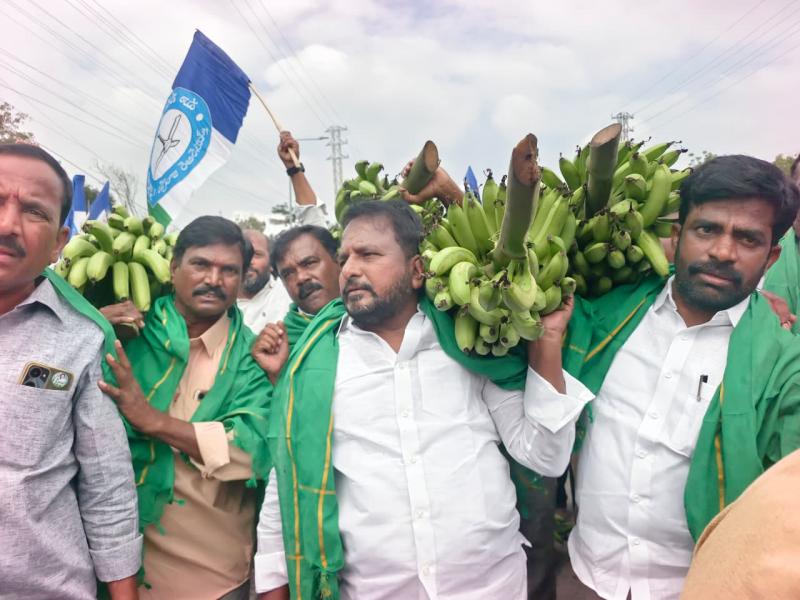 అనంతపురం: అరటి రైతులకు మద్దతుగా వైయస్సార్ సీపీ నేత, మాజీ మంత్రి డా. సాకే శైలజానాథ్ అనంతపురం కలెక్టరేట్ వద్ద సోమవారం పార్టీ శ్రేణులు, రైతులతో కలసి ధర్నా నిర్వహించారు. జేఎన్టీయూ నుంచి కలెక్టరేట్ వరకూ అరటి గెల్లలతో భారీ ర్యాలీ చేశారు. ఈ సందర్భంగా ఆయన మాట్లాడుతూ..గిట్టుబాటు ధర ఇవ్వకపోతే అనంతపురం జిల్లాలోని నలుమూలలను మొత్తం దిగ్భంధం చేస్తామని హెచ్చరించారు. కూటమి ప్రభుత్వం వచ్చిన తర్వాత ఏ పంటకూ గిట్టుబాటు ధర లేదని శైలజానాథ్ విమర్శించారు. రైతులు పండించిన అరటి పంటను వెంటనే ప్రభుత్వమే కొనుగోలు చేసి న్యాయం చేయాలని ఆయన డిమాండ్ చేశారు. అరటి పండ్లను కేజీ రెండు రూపాయలకు వస్తోందని.. రైతుల కడుపు కేకలు చంద్రబాబుకు వినిపించడం లేదా అని ప్రశ్నించారు. చంద్రబాబుది చేతుల ప్రభుత్వం కాదు… మాటల ప్రభుత్వం మాత్రమే అని విమర్శించారు. రైతుల పక్షాన ఆలోచించే బుర్ర చంద్రబాబుకు లేదని శైలజానాథ్ అన్నారు. ‘వ్యవసాయం దండగ’ అని మాట్లాడిన చంద్రబాబు రైతుల సమస్యల్ని పట్టించుకోరని,అబద్ధాలతో చంద్రబాబు పరిపాలన సాగుతోంది… ఇక ఇలా సాగనివ్వమని రైతుల పక్షాన ఆయన హెచ్చరించారు. “దాదాపు 2.5 లక్షల కోట్లు అప్పు తెచ్చారు. అందులో కనీసం రూ.10,000 కోట్లు రైతులకు ఇవ్వండి అని డిమాండ్ చేశారు. గతంలో మాజీ ముఖ్యమంత్రి వైఎస్ జగన్మోహన్ రెడ్డి రైతులకు ఎలా న్యాయం చేశారో ఆయనను చూసి నేర్చుకోండని హితవు పలికారు. అనంతరం కలెక్టరేట్లో జరుగుతున్న గ్రీవెన్స్లో కలెక్టర్ ఓ. ఆనంద్కు రైతుల గిట్టుబాటు ధరలు పెంచాలని వినతిపత్రం అందజేశారు.