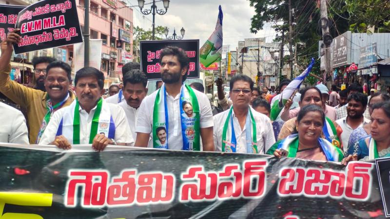 రాజమండ్రి: నగరంలోని దేవి చౌక్ పరిసర ప్రాంతంలో ఉన్న గౌతమీ సూపర్ బజార్ అక్రమ కట్టడాలను వెంటనే కూల్చివేయాలని డిమాండ్ చేస్తూ మాజీ ఎంపీ మార్గాని భరత్, రాజమండ్రి పార్లమెంట్ సమన్వయకర్త డాక్టర్ గూడూరు శ్రీనివాస్ ఆధ్వర్యంలో నిరసన కార్యక్రమం నిర్వహించారు. ఈ సందర్భంగా భరత్ మాట్లాడుతూ, గత ఎన్నికల సమయంలో గౌతమీ సూపర్ బజార్ విషయంలో తాను ఐదు కోట్ల ముడుపులు తీసుకున్నానని ప్రస్తుత ఎమ్మెల్యే వేల కరపత్రాలు పంచారని విమర్శించారు. అయితే హైకోర్టులో పిటిషన్ వేసి కూల్చివేతకు ఆదేశాలు తెచ్చుకోవడం ద్వారా తన నిజాయితీని నిరూపించుకున్నానని తెలిపారు. ఇప్పుడు అసలు ముడుపులు తీసుకున్నది ఎవరో ప్రజలకు స్పష్టమైందని పేర్కొన్నారు. నిబంధనలకు విరుద్ధంగా గౌతమీ సూపర్ బజార్ నిర్మాణం జరిగిందని, సెల్లార్ పార్కింగ్ లేకుండా, తూర్పు వైపు 13 అడుగులు, ఉత్తరం వైపు 19 అడుగులు విడిచిపెట్టకుండా నిర్మాణం చేపట్టారని ఆరోపించారు. పోసిషన్ సర్టిఫికెట్ లేకుండానే షాపులను అద్దెకు ఇవ్వడం అప్రజాస్వామ్యమని అన్నారు. ఇంత జరుగుతున్నా స్థానిక ఎమ్మెల్యే స్పందించడంలేదని విమర్శించిన భరత్, జిల్లా కలెక్టర్ మరియు మున్సిపల్ ప్లానింగ్ అధికారులను ఉద్దేశించి కోర్టు ఆదేశాలను గౌరవించి వెంటనే చర్యలు తీసుకోవాలని కోరారు. లేని పక్షంలో నిరసనలు మరింత ఉధృతం చేసి న్యాయం జరిగే వరకు పోరాటం కొనసాగిస్తామని హెచ్చరించారు. “చట్టానికి గౌరవం లేదు, ప్రజల సమస్యలపై శ్రద్ధ లేదు, అభివృద్ధి శూన్యం – ముడుపుల రాజకీయాలకు ఇది నిదర్శనం” అని భరత్ విమర్శించారు. తదనంతరం పార్టీ నాయకులు, కార్యకర్తలతో కలిసి మున్సిపల్ కార్యాలయంలో హైకోర్టు ఆదేశాలు అమలు చేసి అక్రమ కట్టడాలను కూల్చివేయాలని వినతి పత్రం అందజేశారు. ఈ కార్యక్రమంలో పార్టీ సీనియర్ నాయకులు, విభాగాల అధ్యక్షులు, వార్డు ఇంచార్జీలు, కార్యకర్తలు పాల్గొన్నారు.