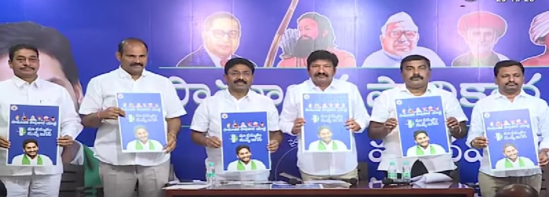 తాడేపల్లి: భారతదేశంలో సామాజిక న్యాయాన్ని, ధర్మాన్ని పాటించిన ఏకైక ముఖ్యమంత్రి వైయస్ జగన్మోహన్రెడ్డి అని, సామాజిక న్యాయం అనే పదానికి అసలు సిసలైన నిర్వచనాన్ని ఈ నాలుగున్నరేళ్ల పాలనలో చాటిచెప్పారని గృహ నిర్మాణ శాఖ మంత్రి జోగి రమేష్ అన్నారు. ఈనెల 26వ తేదీ నుంచి మూడు ప్రాంతాల్లో ప్రారంభం కాబోతున్న సామాజిక సాధికార యాత్ర వివరాలను మంత్రులు జోగి రమేష్, మేరుగు నాగార్జున, ఆదిమూలపు సురేష్, ఎమ్మెల్యే కొలుసు పార్థసారధి, పార్టీ ముఖ్య నేతలు వివరించారు. ఈ సందర్భంగా తాడేపల్లిలోని వైయస్ఆర్ కాంగ్రెస్ పార్టీ కేంద్ర కార్యాలయంలో ఏర్పాటు చేసిన విలేకరుల సమావేశంలో సామాజిక సాధికార యాత్ర వాల్పోస్టర్ను ఆవిష్కరించారు. ఈ సందర్భంగా మంత్రి జోగి రమేష్ ఏం మాట్లాడారంటే.. జగనన్న పరిపాలన జనం మెచ్చిన పరిపాలన. 77 సంవత్సరాల స్వతంత్య్ర భారత దేశ చరిత్రలో ఏ ఒక్క రాజకీయ నాయకుడు కూడా సామాజిక ధర్మాన్ని పాటించలేని పరిస్థితుల్లో ఆంధ్రప్రదేశ్ రాష్ట్రంలో సామాజిక ధర్మం పాటించిన ఏకైక నాయకుడు సీఎం వైయస్ జగన్. ముఖ్యమంత్రి నాయకత్వాన్ని పటిష్టపరుస్తూ బీసీ, ఎస్సీ, ఎస్టీ, మైనార్టీలు ఒక్కతాటిపైకి వచ్చి పేదలకు – పెత్తందార్లకు మధ్య జరిగే యుద్ధంలో గొంతు గొంతు కలిపి ఏకమై జగనన్నకు అండగా నిలుద్దాం. సామాజిక న్యాయాన్ని ఆచరణలో చేసి చూపించిన జగనన్నకు అండగా నిలబడదాం. టీడీపీ హయాంలో బీసీ అంటే బిజినెస్క్లాస్.. వైయస్ జగన్ పాలనలో బీసీలను సమాజానికి బ్యాక్బోన్ క్లాస్గా మార్చారు. అలాంటి జగనన్నకు మద్దతుగా నిలవాల్సిన అవసరం ఉంది. రేపటి నుంచి 175 నియోజకవర్గాల్లో సామాజిక భేరి మోగించబోతున్నాం. మూడు విడతల్లో బస్సు యాత్ర ఉంటుంది. మొదటి విడత ఇచ్ఛాపురం, తెనాలి, శింగనమల మూడు చోట్ల కూడా రణభేరి మోగించబోతున్నాం. పెత్తందార్ల కోటలను బద్ధలు కొట్టేందుకు ఎస్సీ, ఎస్టీ, బీసీ, మైనార్టీలమంతా సంఘటితంగా ముందుకు వెళ్తున్నాం. జగనన్న పాలనలో కేబినెట్ కూర్పు దగ్గర నుంచి 68 శాతం బీసీ, ఎస్సీ, ఎస్టీ, మైనార్టీలకు అధిక ప్రాధాన్యత కల్పించారు. స్పీకర్ స్థానం నుంచి మండలి చైర్మన్.. ఇలా ఒకటి రెండు కాదు.. జనరల్ స్థానాలను సైతం బీసీ, ఎస్టీ, ఎస్సీ, మైనార్టీలకు ఇచ్చి గౌరవించిన జగనన్నకు జైజైలు పలుకుతూ సామాజిక సాధికార యాత్రను కొనసాగించనున్నాం. నిజం గెలవాలని చంద్రబాబు సతీమణి యాత్ర చేపడుతున్నారు. నిజం ఈరోజుకైనా గెలిచింది కాబట్టే చంద్రబాబు జైల్లో ఉన్నాడు. పాపం పండింది, అవినీతి బయటపడింది కాబట్టే బాబు రాజమండ్రి జైల్లో ఉన్నాడు. నిజం గెలవాలని కాకుండా చంద్రబాబు పాప పరిహార యాత్ర అని పేరు పెట్టుకుంటే బాగుండేది. ఎన్టీఆర్ను వెన్నుపోటు పొడిచిన నాటి నుంచి 2019 వరకు చంద్రబాబు చేసిన పాపాలన్నీ పండాయి కాబట్టే అరెస్టు అయ్యాడు.. బోన