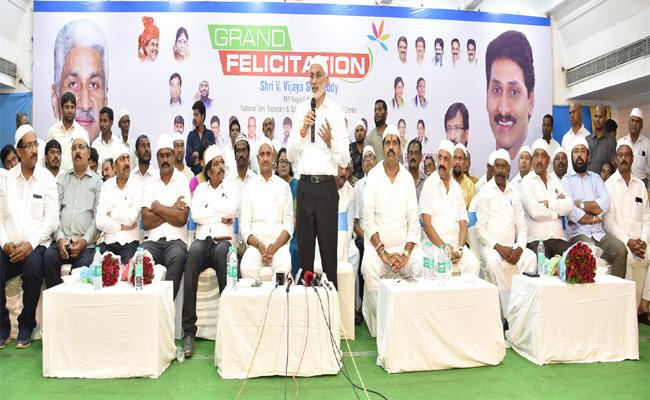 విశాఖపట్నం: వైయస్ఆర్ కాంగ్రెస్ పార్టీ ఎప్పుడూ ముస్లింల ప్రయోజనాలను కాపాడుతుందని పార్టీ జాతీయ ప్రధాన కార్యదర్శి, ఎంపీ విజయసాయి రెడ్డి చెప్పారు. జిల్లా పరిషత్ సమీపంలోని అంకోసాలో వైయస్ఆర్సీపీ మైనారిటీ సెల్ ఆధ్వర్యంలో విజయసాయిరెడ్డిని ఘనంగా సత్కరించారు. ఈ సందర్భంగా ఆయన మాట్లాడుతూ ..ట్రిపుల్ తలాక్ బిల్లును పార్లమెంట్లో ప్రవేశపెట్టినప్పుడు మన వైఖరి ఏంటని సార్ అని అధినేత వైయస్ జగన్మోహన్రెడ్డిని సంప్రదించగా ముస్లిం ప్రయోజనాలను కాపాడాల్సిన బాధ్యత మనపై ఉందని చెప్పారని వెల్లడించారు. ముస్లింలంతా ట్రిపుల్ తలాక్ బిల్లును వ్యతిరేకిస్తున్నారని.. మనం కూడా వారి ప్రయోజనాలను కాపాడాలంటే బిల్లుకు వ్యతిరేకంగా ఓటు వేయాలని సూచించి ముస్లింలపై ఆయనకున్న అభిమానాన్ని చాటుకున్నారని విజయసాయిరెడ్డి గుర్తు చేశారు. ట్రిపుల్ తలాక్ బిల్లుకు ఆమోదం తెలపాలని కొన్ని రాజకీయపార్టీల ఒత్తిడి ఉన్నప్పటికీ వ్యతిరేకంగా పార్లమెంట్లో పోరాడాలని జగన్మోహన్రెడ్డి ఆదేశించారన్నారు. ముస్లింల ప్రయోజనాలను కాపాడేది వైఎస్సార్సీపీ మాత్రమే అని చెప్పారు. ముస్లింలకు అధిక ప్రాధాన్యత ముస్లిం సోదరులంతా వైయస్ఆర్సీపీని బలపరిచి అధికారంలోకి తీసుకువచ్చారని విజయసాయిరెడ్డి పేర్కొన్నారు. పార్టీ తరఫున ఉన్న మూడు ఎమ్మెల్సీ స్థానాల్లో ఒక ఎమ్మెల్సీని ముస్లింలకు కేటాయిస్తామని సీఎం వైయస్ జగన్మోహన్రెడ్డి ప్రకటించారరని ఈ సందర్భంగా గుర్తు చేశారు. విశాఖవాసిగా మీ అందరితో కలసి మెలసి ఉండాలనే ఆకాంక్ష ఉందని ఆయన ఉద్వేగంగా మాట్లాడారు. జిల్లా ఇన్చార్జి మంత్రి మోపిదేవి వెంకటరమణ మాట్లాడుతూ దేశంలో ఏ ముఖ్యమంత్రి ముస్లింల కోసం చేపట్టని అభివృద్ధి కార్యక్రమాలు వైఎస్ రాజశేఖరరెడ్డి హయాంలో జరిగాయన్నారు. పేద ప్రజల అభ్యున్నతికి కృషిచేసిన ఏకైక ముఖ్యమంత్రి వైయస్ జగన్మోహన్రెడ్డి అని కొనియాడారు. మంత్రి అవంతి శ్రీనివాస్ మాట్లాడుతూ టీడీపీ నేతలు ముస్లింలను వేధింపులకు గురిచేసినా వైయస్ఆర్సీపీ వెంటే నడిచారని కొనియాడారు. ఇదే తరహాలో రాబోయే జీవిఎంసీ ఎన్నికల్లోౖ వెయస్ఆర్సీపీని గెలిపించాలని కోరారు. కార్యక్రమంలో ఎంపీ ఎంవీవీ సత్యనారాయణ, నగర అధ్యక్షుడు వంశీ కృష్ణ , వీఎంఆర్డీఏ చైర్మన్ ద్రోణంరాజు శ్రీనివాస్, మైనార్టీ సెల్ రాష్ట్ర ప్రధాన కార్యదర్శి ఫరుఖీ, ఎమ్మెల్యే బాబూరావు, మాజీ ఎమ్మెల్యే మళ్ల విజయప్రసాద్, సమన్వయకర్త కె.కె రాజు, రాష్ట్ర ప్రధాన కార్యదర్శి కోలా గురువులు, పార్లమెంట్, నగర మైనారిటీ సెల్ అధ్యక్షులు బర్కత్ అలీ, షరీఫ్, మైనారిటీ విభాగం ముఖ్య నాయకులు షబీరా, షేక్ బాబ్జి, అప్రూజ్ లతీఫ్, కేవీ బాబా, షేక్ మున్ని, రాష్ట్ర అధికార ప్రతినిధి కొయ్య ప్రసాదరెడ్డి, రాష్ట్ర కార్యదర్