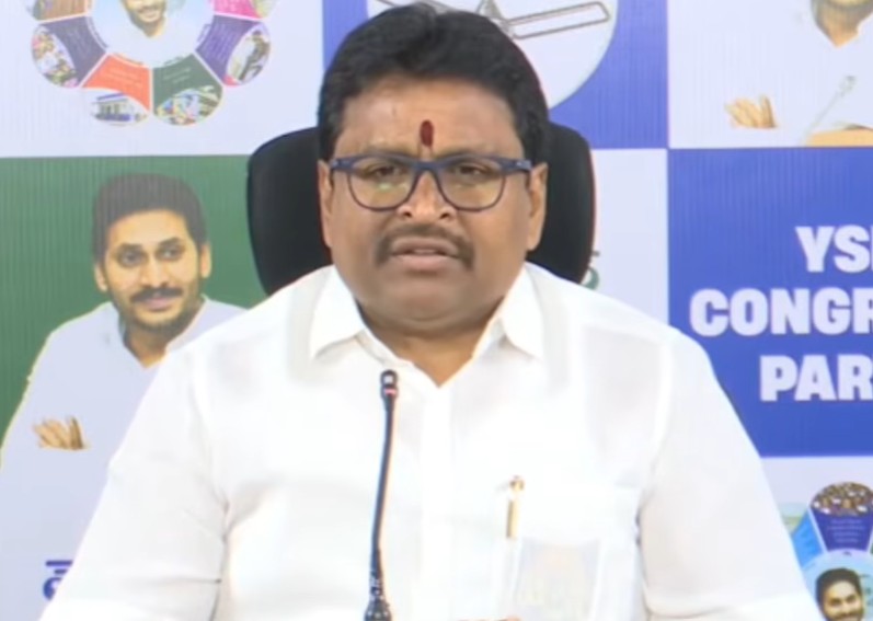 Tadepalli, Feb 8: Former minister Vellampalli Srinivas said the CBI-SIT chargesheet on the Tirumala laddu issue has exposed the false allegations made by Chief Minister Chandrababu Naidu and coalition leaders, yet they continue shameless propaganda. Speaking at the YSRCP camp office in Tadepalli, he stated that repeated claims about animal fat, pig fat, and fish oil in laddu ghee deeply hurt Hindu sentiments, and noted that the SIT chargesheet contains no evidence of animal fat.