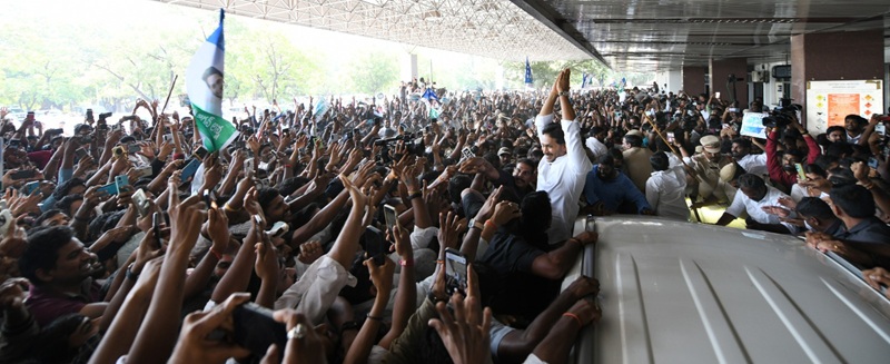 Throughout his journey, massive crowds of YSRCP cadres and admirers gathered along the routes, giving him a warm and enthusiastic welcome across Hyderabad.