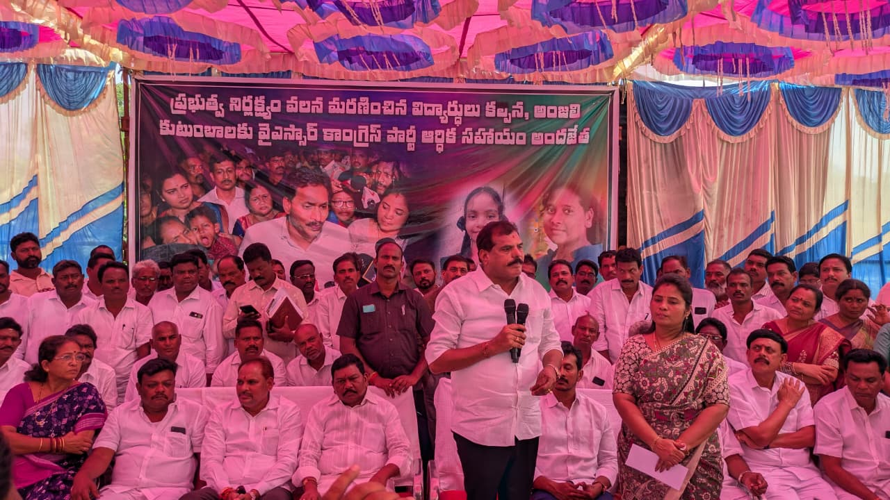 కురుపాం: పచ్చకామెర్లతో మరణించిన కుటుంబాలకు వైయస్ఆర్సీపీ అధినేత, మాజీ ముఖ్యమంత్రి వైయస్ జగన్ మోహన్ రెడ్డి ఆర్థికసాయం చేశారు. పచ్చకామెర్లతో విద్యార్థులు కల్పన, అంజలి ఇటీవల మృతి చెందారు. ఇటీవల ఉత్తరాంధ్ర పర్యటనకు వెళ్లిన వైయస్ జగన్ బాధిత కుటుంబాలను పరామర్శించారు. ఆ సమయంలో రెండు కుటుంబాలకు రూ.5 లక్షల చొప్పున ఆర్థికసాయం ప్రకటించారు. ఈ నేపథ్యంలో శుక్రవారం వైయస్ఆర్సీపీ రీజనల్ కో-ఆర్డినేటర్, మాజీ మంత్రి బొత్స సత్యనారాయణ చేతుల మీదుగా బాధిత కుటుంబాలకు ఆర్థికసాయం అందజేశారు. వైయస్ జగన్ ఆదేశాలతో రెండు కుటుంబాలకు రూ.5 లక్షలు చొప్పున ఆర్థిక సాయం చేశారు. అలా చెప్పుకోవడం సిగ్గుచేటు: బొత్స మంచి నీరు కలుషితం అయ్యాయి కాబట్టి పచ్చ కామెర్లు వచ్చాయని చెప్పుకోవడం కూటమి ప్రభుత్వానికి సిగ్గు చేటు అని బొత్స సత్యనారాయణ ఆగ్రహం వ్యక్తం చేశారు. గిరిజన హాస్టల్ విద్యార్థుల పిల్లల విషయంలో విద్యాశాఖ మంత్రి లోకేష్, డిప్యూటీ సీఎం పవన్ కళ్యాణ్ ఎందుకు స్పందించలేదని నిలదీశారు. ‘వైయస్ఆర్సీపీ అధినేత, మాజీ సీఎం వైయస్ జగన్ మానవత్వంతో పచ్చ కామెర్లతో మృతి చెందిన కల్పన, అంజలి కుటుంబాలకు ఐదు లక్షల చొప్పున సాయం అందించారు. గిరిజన విద్యార్థులకు ధైర్యం చెప్పడానికే వైయస్ జగన్ కేజీహెచ్కు వెళ్లారు. దాన్ని కూడా రాజకీయం చేస్తారా?. ఆసుపత్రిలో ఉండి కూడా చిన్నారులు చనిపోతున్నారు. విద్యార్థులకు అండగా ఉండటం ప్రభుత్వ బాధ్యత కాదా?. ఇంత బలహీనమైన ప్రభుత్వాన్ని ఎప్పుడూ చూడలేదు. మంచి నీరు కలుషితం అయ్యాయి కాబట్టి పచ్చ కామెర్లు వచ్చాయని చెప్పుకోవడం ప్రభుత్వానికి సిగ్గు చేటు. జిల్లా మంత్రులు, అధికారులు ఏం చేస్తున్నారు. మీ ఇంట్లో పిల్లలకు అనారోగ్యం వస్తే ఇలాగే వ్యవహరిస్తారా?. విద్యాశాఖ మంత్రి లోకేష్, డిప్యూటీ సీఎం పవన్ కళ్యాణ్ ఎందుకు స్పందించలేదు. అందరు హాస్టల్ విద్యార్థులకు స్క్రీనింగ్ చేసి, వ్యాధి నిర్ధారణ చేయాలి. స్వతంత్రం వచ్చాక ఇంత బాధ్యతా రాహిత్యంగా ఏ ప్రభుత్వం లేదు. పేదలకు అందుబాటులో వైద్యం అందించాలి అనే వైయస్ జగన్ ప్రతి జిల్లాకు ప్రభుత్వ మెడికల్ కాలేజీని ఏర్పాటు చేశారు. పిల్లల ప్రాణాలతో చెలగాటమాడవద్దు’ అంటూ బొత్స సత్యనారాయణ హితవు పలికారు
