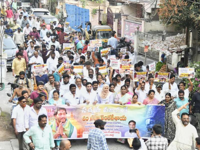 విజయవాడ: తిరుపతి లడ్డు ప్రసాదంపై అసత్య ప్రచారాలు చేస్తూ కోట్లాది మంది హిందూ భక్తుల మనోభావాలను దెబ్బతీసిన కూటమి నేతలకు మంచి బుద్ధి ప్రసాదించాలని కోరుతూ ఎన్టీఆర్ జిల్లా వైయస్ఆర్ కాంగ్రెస్ పార్టీ అధ్యక్షులు దేవినేని అవినాష్ ఆధ్వర్యంలో విజయవాడ లబ్బీపేట వెంకటేశ్వర స్వామి ఆలయంలో ప్రత్యేక పూజలు నిర్వహించారు. ఈ సందర్భంగా వైయస్ఆర్సీపీ శ్రేణులు విష ప్రచారాలు ఇకనైనా ఆపాలని డిమాండ్ చేశాయి. ఈ సందర్భంగా దేవినేని అవినాష్ మాట్లాడుతూ, ముఖ్యమంత్రి హోదాలో ఉన్న చంద్రబాబు నాయుడు కోట్లాది మంది ఆరాధ్యదైవమైన శ్రీ వెంకటేశ్వర స్వామి ప్రసాదం గురించి నోటికొచ్చినట్లు మాట్లాడటం అత్యంత అనుచితమని మండిపడ్డారు. రాజకీయ ప్రయోజనాల కోసం వైయస్ఆర్సీపీపై బురద జల్లాలనే ఉద్దేశంతో తిరుపతి లడ్డూలో జంతువుల కొవ్వు కలిసిందని అబద్ధపు ఆరోపణలు చేశారని విమర్శించారు. రాజకీయాల కోసం దేవుడినే వాడుకునే స్థాయికి చంద్రబాబు దిగజారిపోయారని అన్నారు. ఈ ఆరోపణలు పూర్తిగా అసత్యమని సీబీఐ నివేదిక స్పష్టంగా తేల్చినా, కూటమి నేతలు ఇప్పటివరకు బహిరంగ క్షమాపణలు చెప్పకపోవడం మరింత ఆగ్రహానికి దారితీస్తోందన్నారు. కనీసం హిందుత్వంపై నమ్మకం ఉంటే చేసిన తప్పును సరిదిద్దుకోవాలని డిమాండ్ చేశారు. పవన్ కళ్యాణ్ దుర్గ గుడికి వచ్చి మెట్లు కడిగి భక్తులకు క్షమాపణ చెప్పాలని వ్యాఖ్యానించారు. ఏడాదికిపైగా జంతువుల కొవ్వు కలిసిందంటూ అబద్ధపు ప్రచారాలు చేసి, నిజం బయటపడిన తర్వాత కూటమి నేతలు మొహం చూపించుకోలేక దాక్కొని తిరుగుతున్నారని ఆరోపించారు. ఎల్లో మీడియా ద్వారా మళ్లీ అసత్య ప్రచారాలు చేయించేందుకు ప్రయత్నాలు జరుగుతున్నాయని, ప్రజల ముందుకు వచ్చి క్షమాపణలు చెప్పాల్సిందేనని స్పష్టం చేశారు. ఇప్పటికే అనేక ప్రాంతాల్లో భక్తులు స్వయంగా ముందుకు వచ్చి కూటమి నేతల తీరుపై తీవ్ర ఆగ్రహం వ్యక్తం చేస్తున్నారని తెలిపారు. వైయస్ జగన్ హయాంలో అన్ని వర్గాల ప్రజలకు న్యాయం జరిగిందని, మతసామరస్యానికి పెద్దపీట వేసిన ప్రభుత్వం వైయస్ఆర్సీపీ ప్రభుత్వమేనని పేర్కొన్నారు. గతంలో చంద్రబాబు అభివృద్ధి పేరుతో అనేక గుడులు కూల్చిన చరిత్ర ఉందని గుర్తు చేస్తూ, హిందువులంటే చంద్రబాబు, పవన్ కళ్యాణ్కు గౌరవం లేదని తీవ్రంగా విమర్శించారు. ఇలాంటి అసత్య ప్రచారాలు ఇకపై పునరావృతం కాకూడదని, తిరుమల క్షేత్ర పవిత్రతను కాపాడాల్సిన బాధ్యత ప్రతి ఒక్కరిపై ఉందని వైయస్ఆర్సీపీ నేతలు స్పష్టం చేశారు.