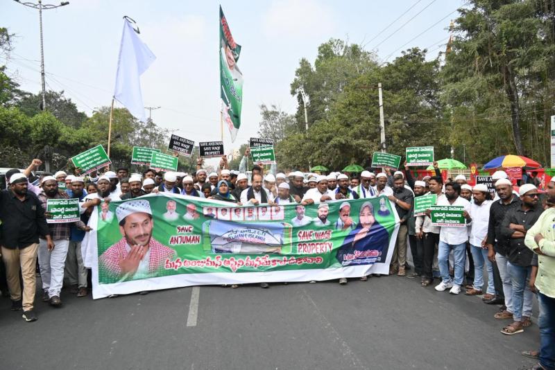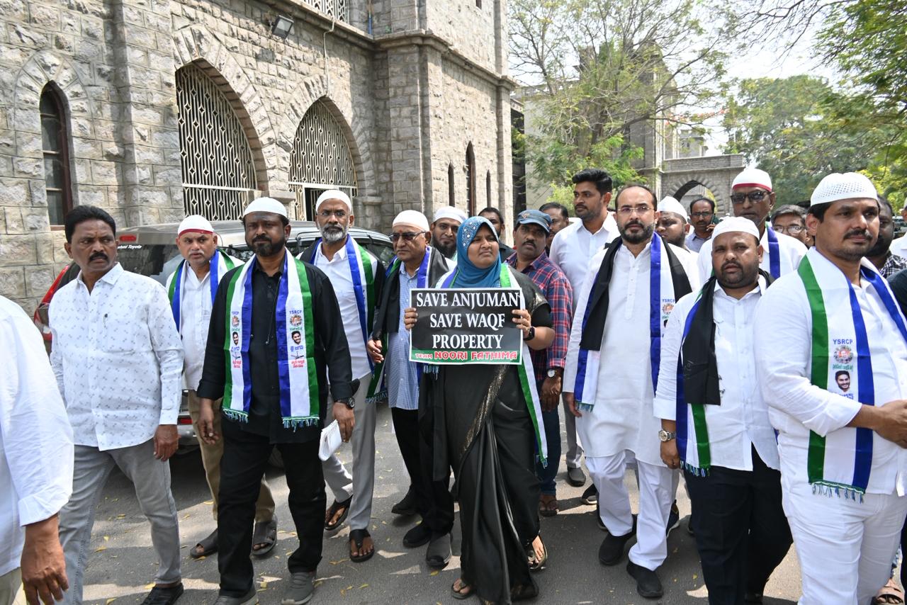 గుంటూరు: కూటమి ప్రభుత్వం అంజుమాన్ ఆస్తులను స్వాధీనం చేసుకునే ప్రయత్నాలకు నిరసనగా వైయస్ఆర్ కాంగ్రెస్ పార్టీ ఆధ్వర్యంలో గుంటూరు నగరంలో భారీ కార్యక్రమం నిర్వహించారు. ప్రజల నుంచి సేకరించిన సంతకాలతో కూడిన పత్రాలను జిల్లా కలెక్టర్కు అందజేశారు. గుంటూరు నగర అధ్యక్షురాలు, తూర్పు నియోజకవర్గ ఇన్చార్జ్ షేక్ నూరి ఫాతిమా ఆధ్వర్యంలో నిర్వహించిన ర్యాలీలో కులాలు, మతాలకు అతీతంగా ఐక్యతను చాటుతూ పార్టీ నాయకులు, కార్యకర్తలు నల్ల దుస్తులు ధరించి కలెక్టర్ కార్యాలయం వరకు కదంతొక్కారు. ఈ సందర్భంగా కూటమి ప్రభుత్వం తీసుకున్న నిర్ణయాలను వెంటనే వెనక్కి తీసుకోవాలని, ఆంజుమన్ ఆస్తుల పరిరక్షణకు ప్రభుత్వం బాధ్యత వహించాలని డిమాండ్ చేశారు. కూటమి ప్రభుత్వ చర్యలు మైనారిటీల హక్కులను హరించేలా ఉన్నాయని, ఈ అన్యాయంపై ప్రజలతో కలిసి వైయస్ఆర్సీపీ పోరాటాన్ని మరింత ఉధృతం చేస్తుందని నాయకులు స్పష్టం చేశారు.ఈ కార్యక్రమంలో కర్నూలు మాజీ ఎమ్మెల్యే, రాష్ట్ర మైనారిటీ వర్కింగ్ ప్రెసిడెంట్ హఫీజ్ ఖాన్, మంగళగిరి ఇన్చార్జ్ వేమారెడ్డి, తాడికొండ ఇన్చార్జ్ బాల వజ్రబాబు, మాజీ వక్ఫ్ బోర్డు చైర్మన్ షేక్ ఖాదర్ బాషా, తెనాలి–ప్రత్తిపాడు అబ్జర్వర్ గులాం రసూల్తో పాటు జిల్లా, నగర, నియోజకవర్గాల మైనారిటీ నాయకులు, కార్పొరేటర్లు, మహిళా నేతలు, పార్టీ కార్యకర్తలు పెద్ద సంఖ్యలో పాల్గొన్నారు.